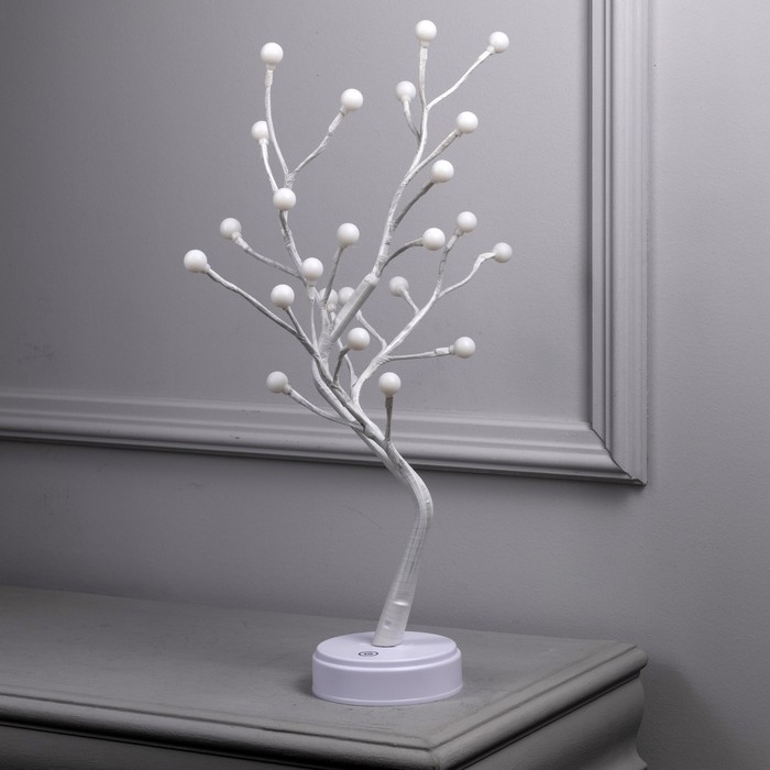Светодиодный куст «Жемчужины» 45 см, 24 LED, постоянное свечение, батарейки ААх3 (не в комплекте), USB, свечение тёплое белое
