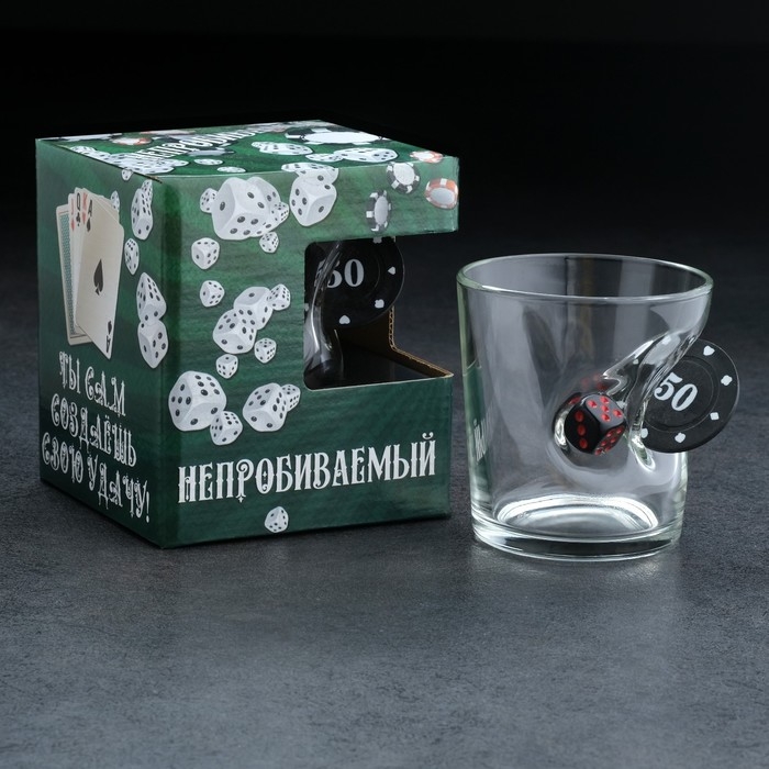 Стакан "Непробиваемый", с фишкой и кубиком, для виски , 250 мл