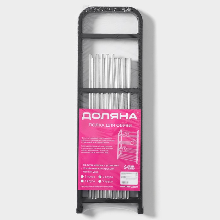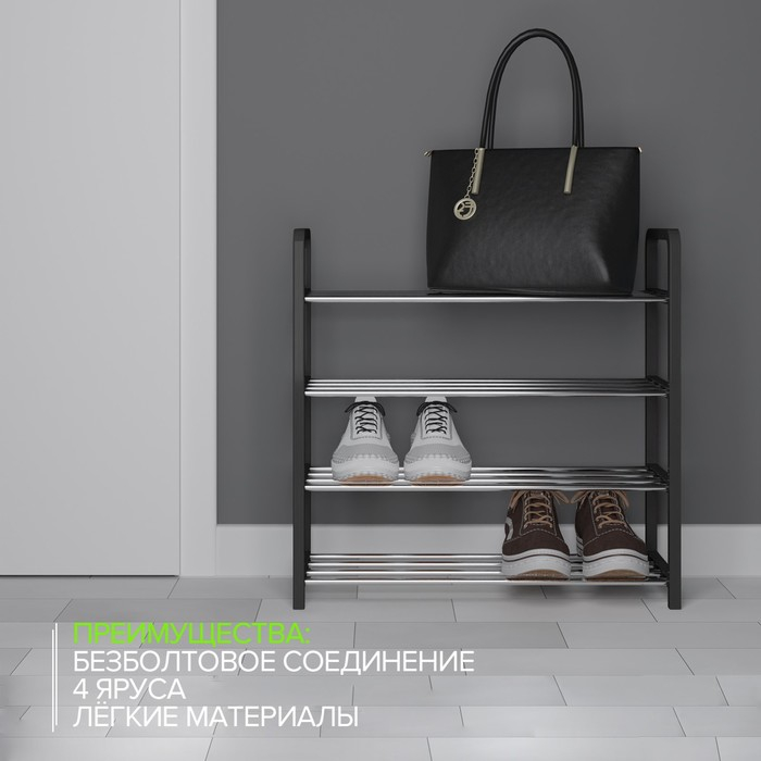 Обувница Доляна, 4 яруса, 42×19×55 см, цвет чёрный