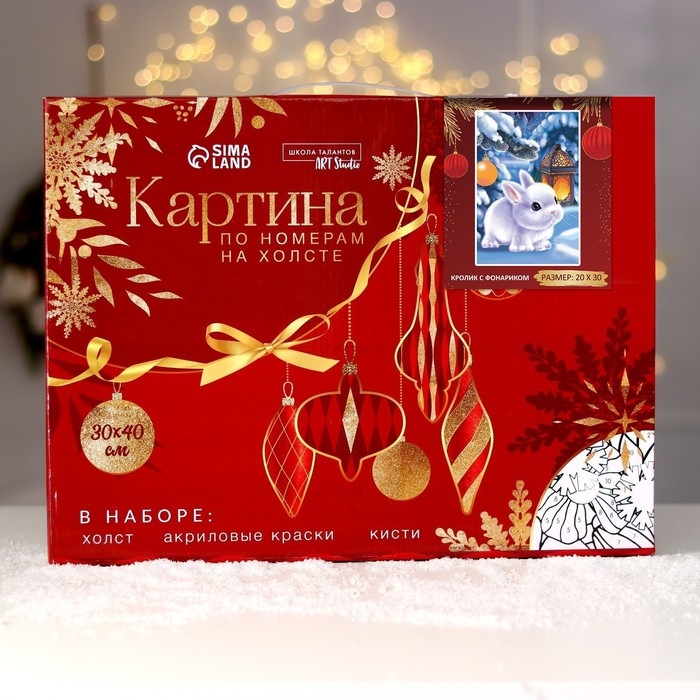 Новогодняя картина по номерам на холсте с подрамником «Новый год! Кролик с фонариком», 20 × 30 см