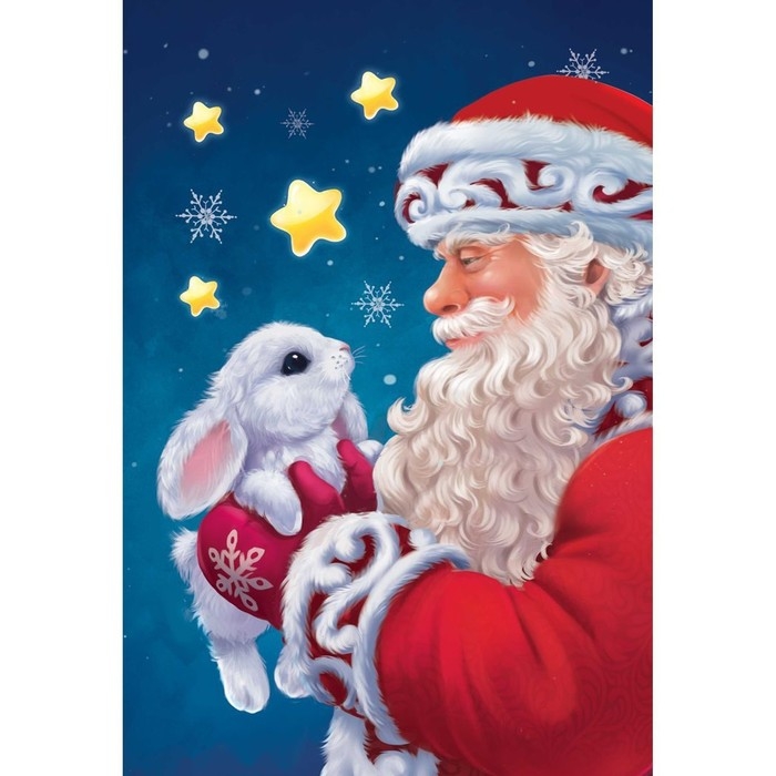 Картина по номерам на новый год на холсте с подрамником «Дед Мороз с кроликом», 20 × 30 см