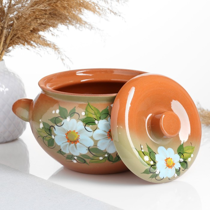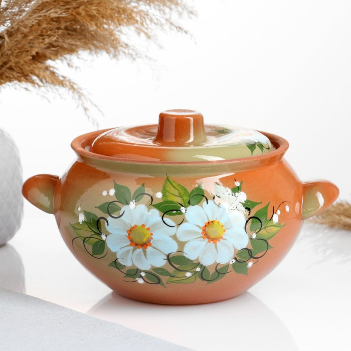 Жаровня "Ромашка" на зелёном, 2л