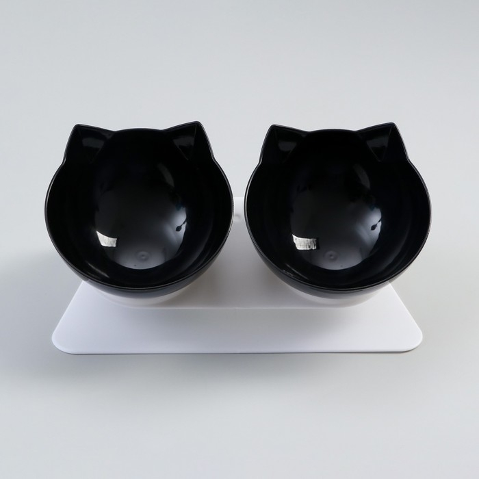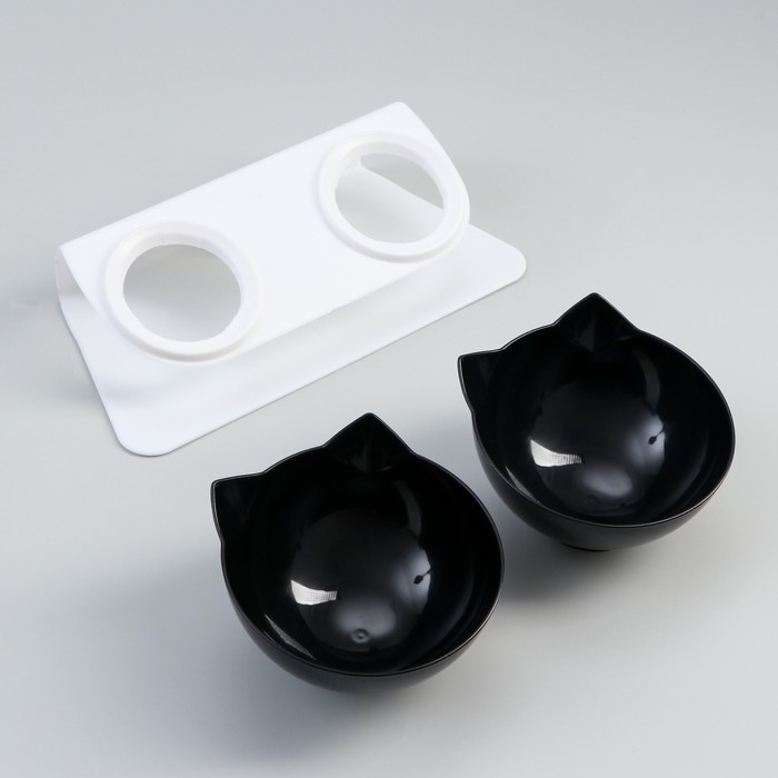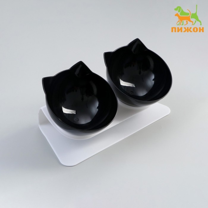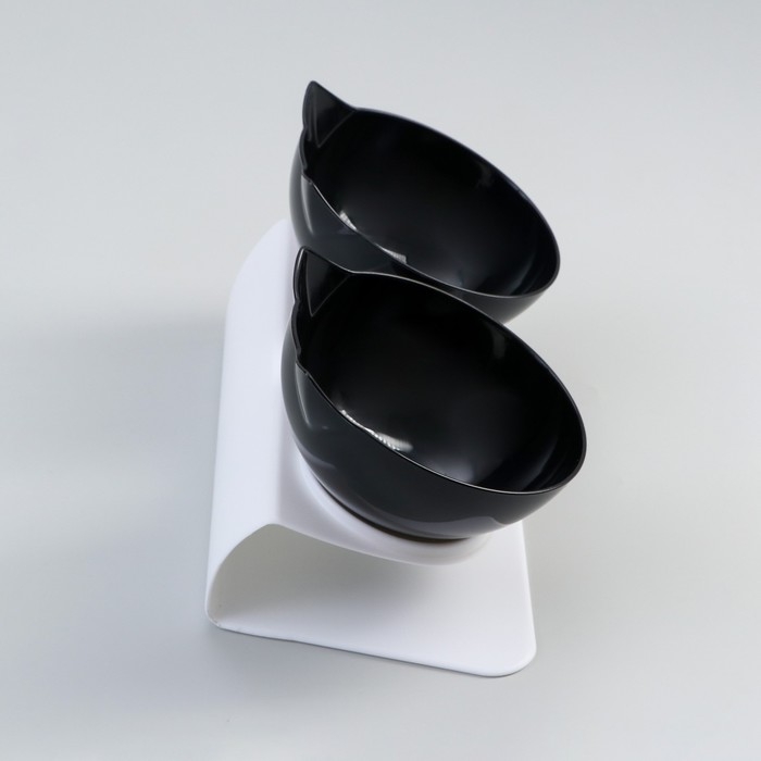 Миски пластиковые на белой подставке 27,5 х 14 х 15 см чёрная/черная