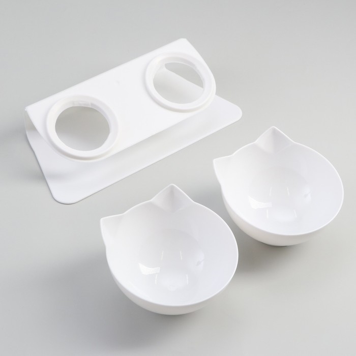 Миски пластиковые на белой подставке 27,5 х 14 х 15 см белые