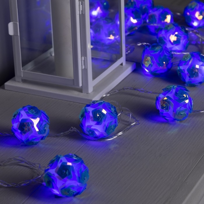 Гирлянда «Нить» 4.5 м с насадками «Цветочные шары», IP20, прозрачная нить, 15 LED, свечение фиолетовое, 220 В