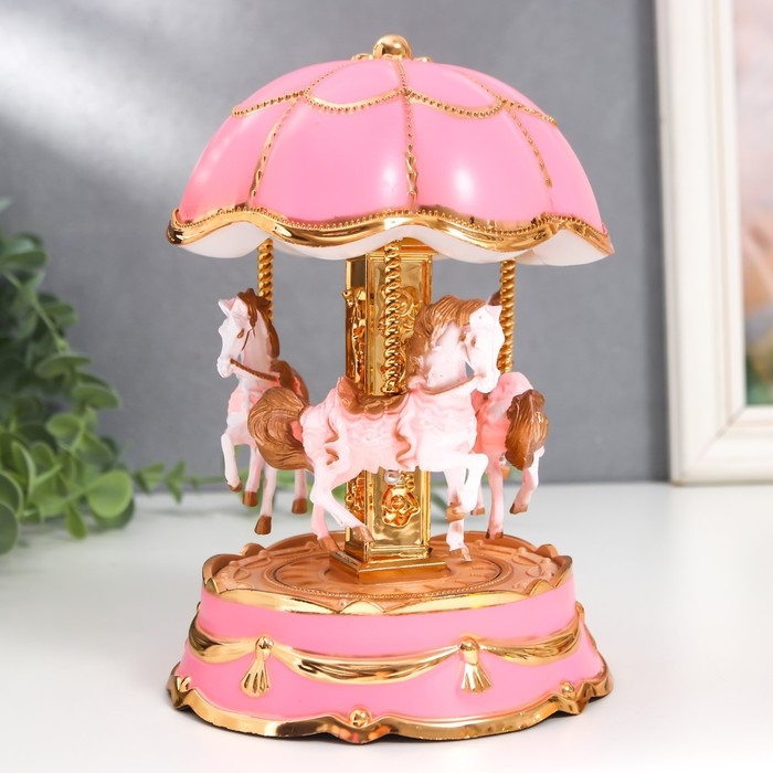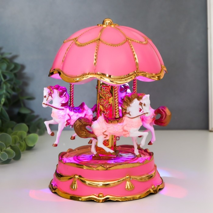 Сувенир музыкальный механический свет "Карусель - лошадки" розовая 12,3х12,3х18 см