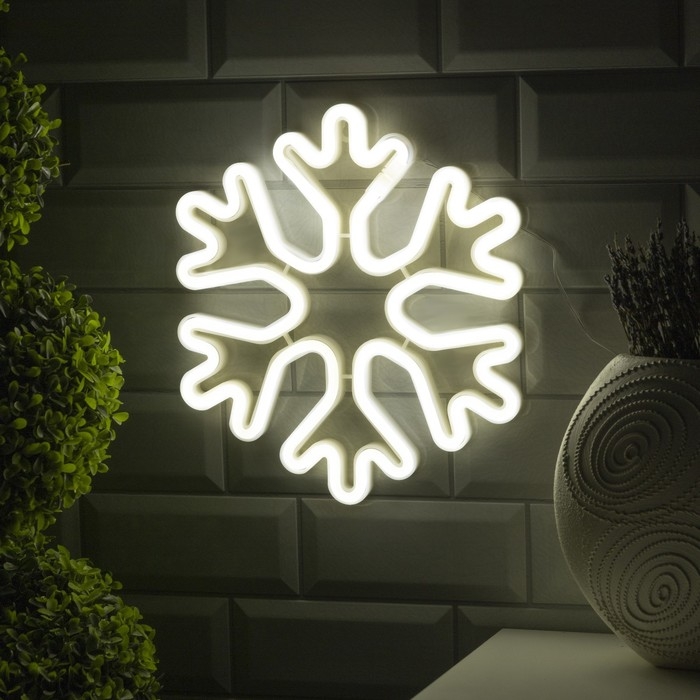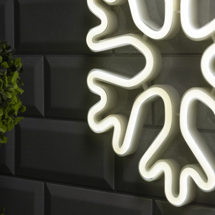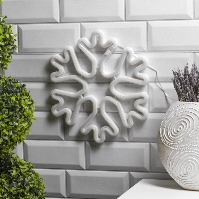 Неоновая вывеска «Снежинка» 30 см, батарейки ААх3 (не в комплекте), USB, свечение белое