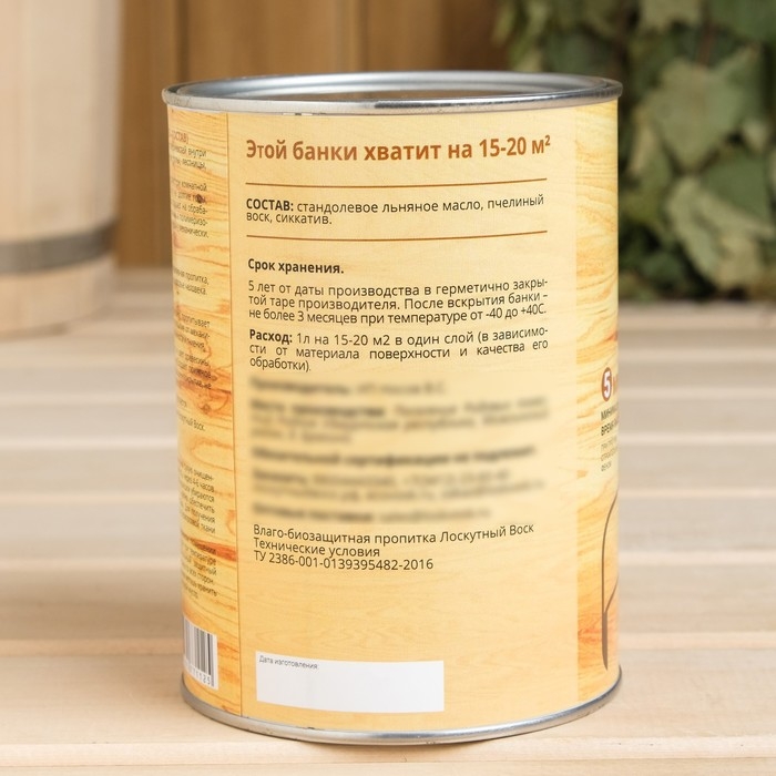 Влаго-биозащитная пропитка "Лоскутный воск ДЕКОР", бесцветный, 1л, железная банка