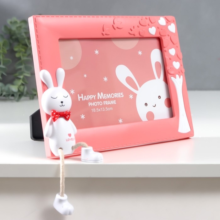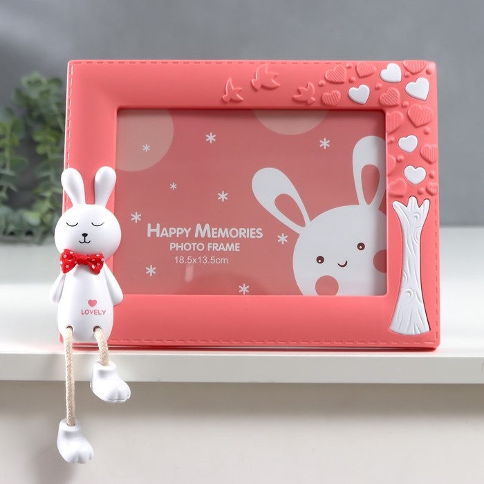 Фоторамка пластик 12х17 см "Зайчик с сердечным деревом" розовая 24х18,5 см