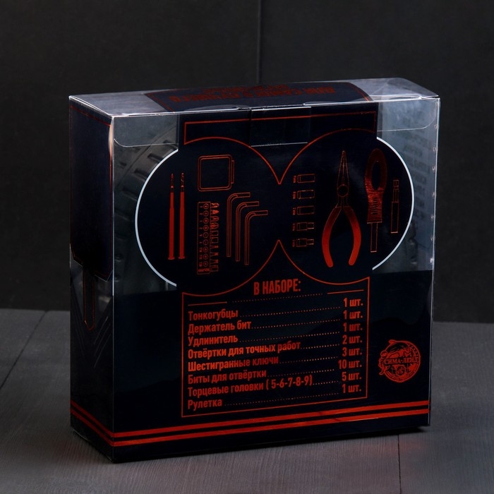 Биты, Держатель бит, Отвёртка, Рулетка, Тонкогубцы, Торцевая головка, Удлинитель, Шестигранник