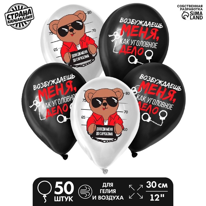 Воздушный шар латексный 12" «Тэди», 50шт.