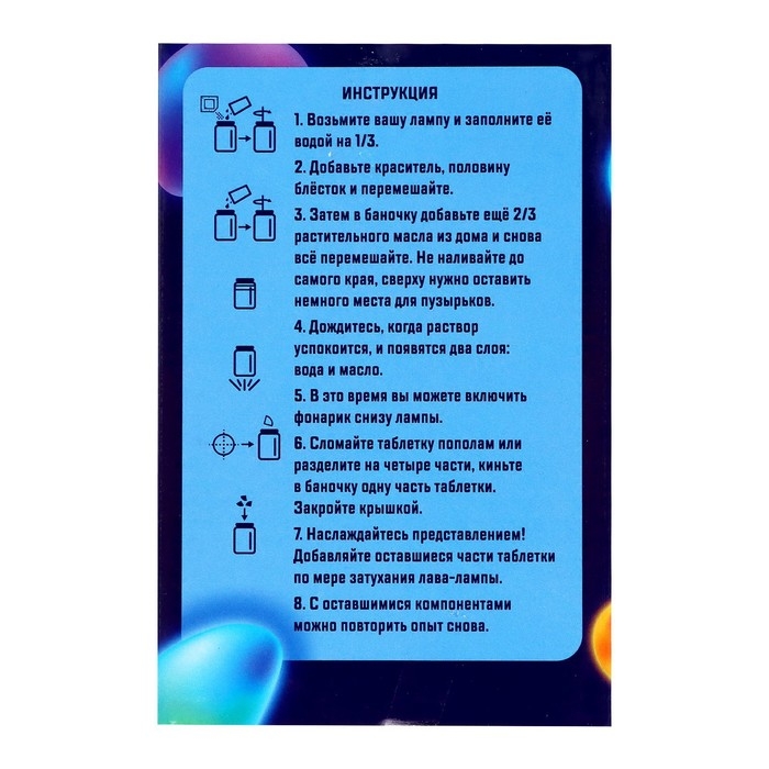 Набор для опытов «Волшебная лава-лампа» поможет весело и с пользой провести время. Ребёнок узнает об удивительных свойствах веществ, проведёт увлекательный эксперимент дома и создаст необычную лампу своими руками.