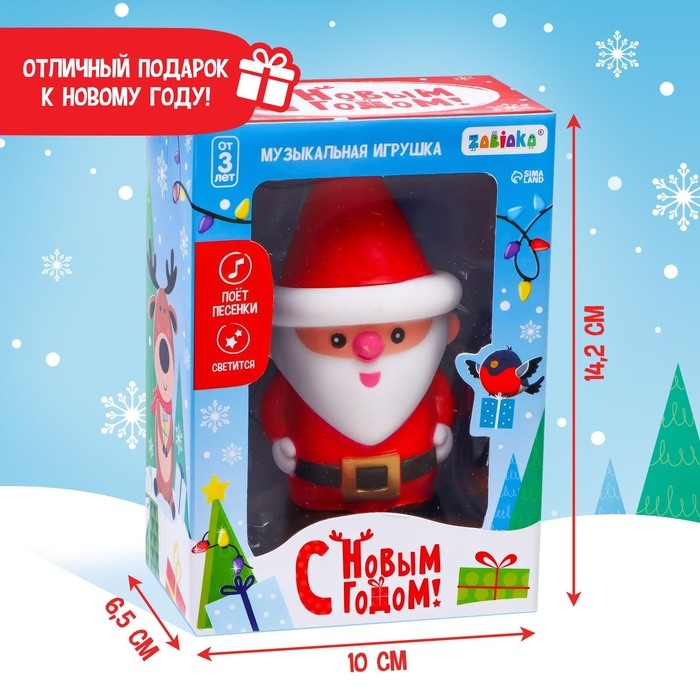 Музыкальная игрушка привлечёт внимание новогодним дизайном и надолго займёт малыша. Ведь фигурка поёт песенки и светится!