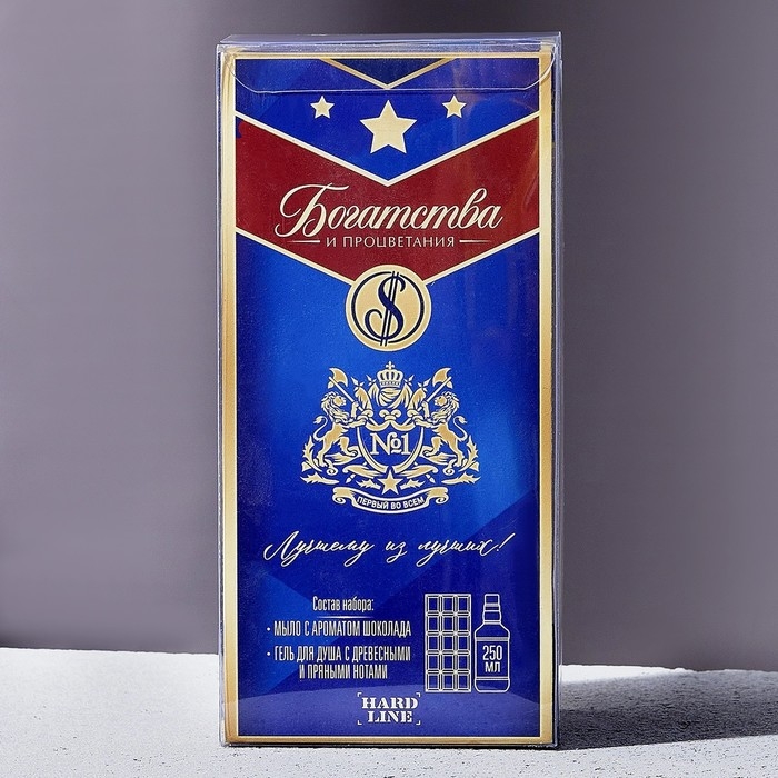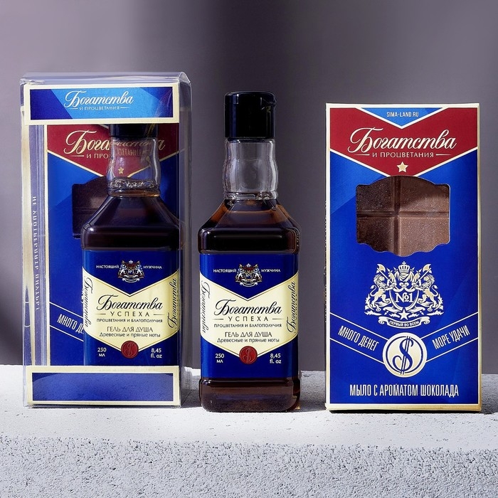 Новогодний подарочный набор косметики «Богатства и процветания», гель для душа во флаконе виски 250 мл и мыло для рук , Новый Год
