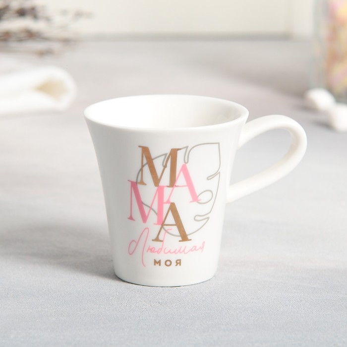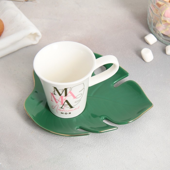 Чайная пара керамическая «Мама», кружка 100 мл, блюдце 15х14 см, цвет белый