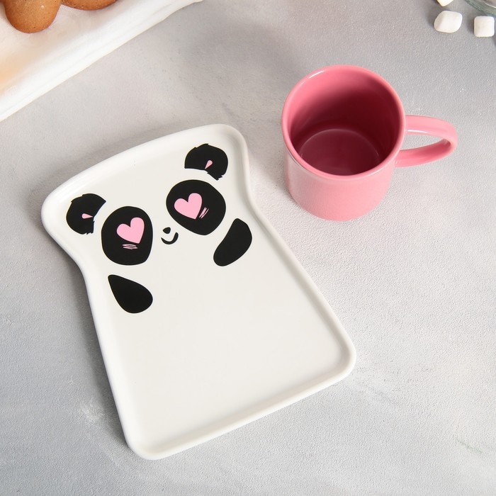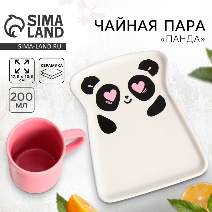 Чайная пара керамическая «Панда», кружка 200 мл, блюдце 17.8х13.3 см, цвет розовый