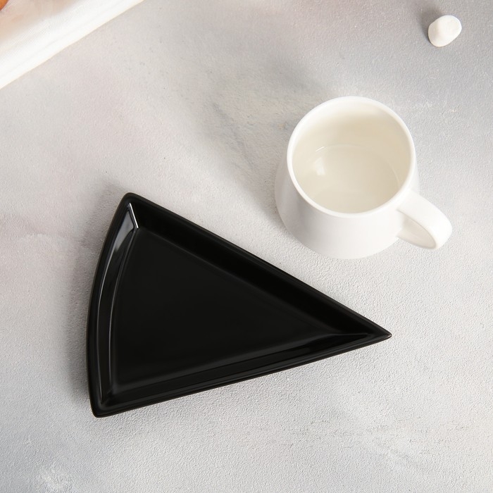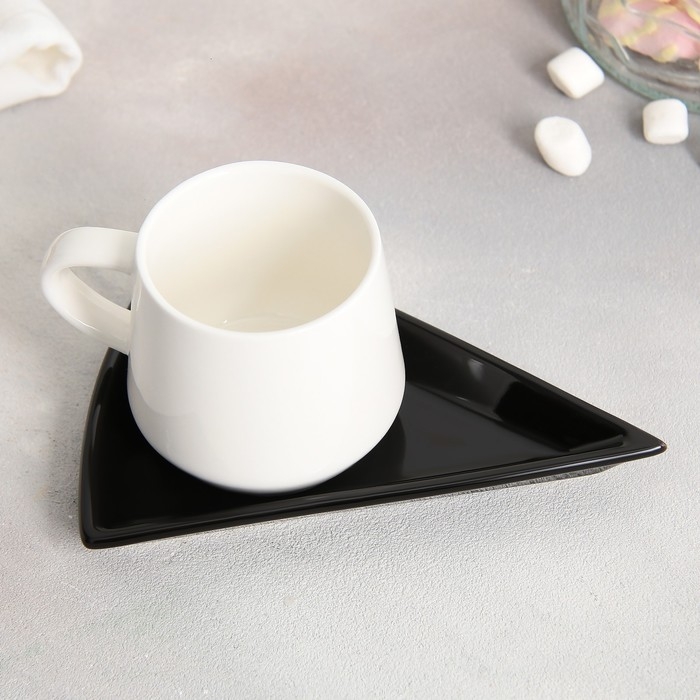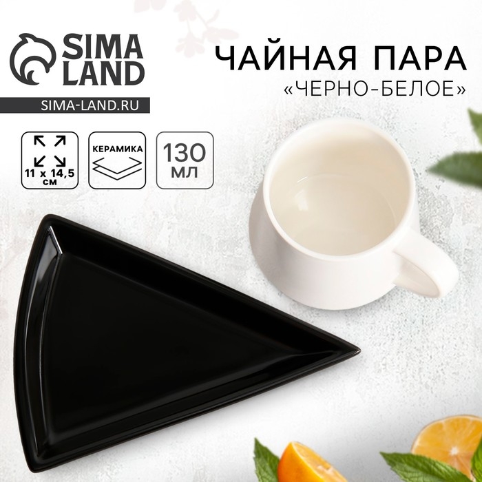 Чайная пара керамическая «Черно-белое», кружка 130 мл, блюдце 11х14.5 см, цвет белый