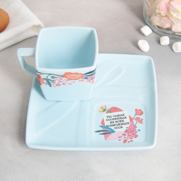 Чайная пара керамическая «Ты самая особенная», кружка 150 мл, блюдце 15.5х15.5 см, цвет голубой