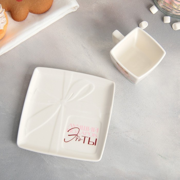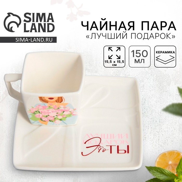 Чайная пара керамическая «Лучший подарок» кружка 150 мл, блюдце 15.5х15.5 см, цвет белый