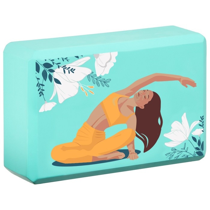 Блок для йоги Sangh Flowers, 23х15х8 см, цвет бирюзовый