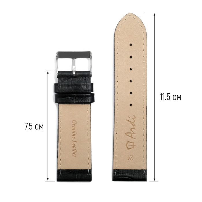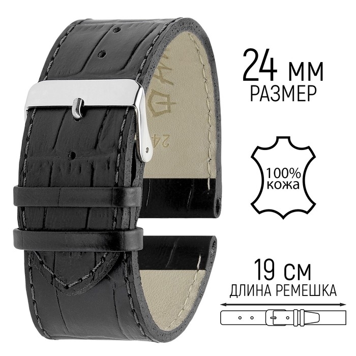 Ремешок для часов, 24 мм, запряжник 75 мм, горт 115 мм, натуральная кожа, черный
