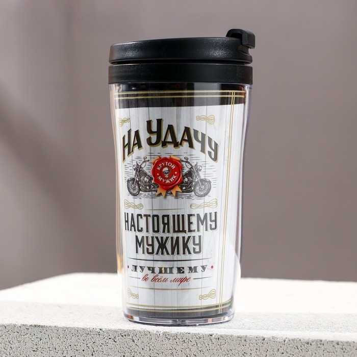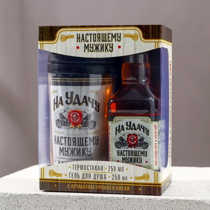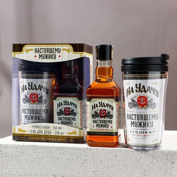 Новогодний подарочный набор косметики «На удачу», гель для душа во флаконе виски 250 мл и термостакан 250 мл, Новый Год