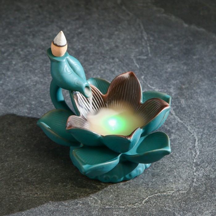 Подставка для благовоний "Лотос совершенства" 10х14х14см, с подсветкой, LR44 х3