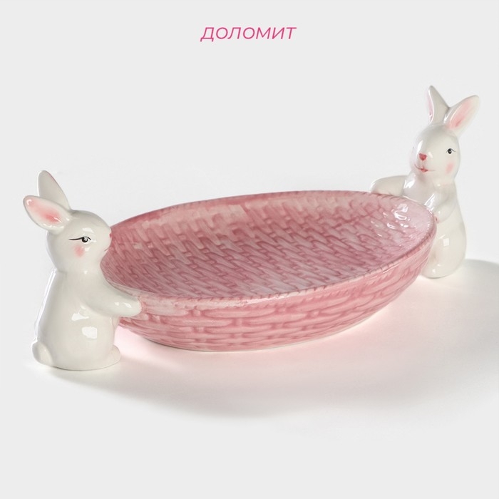 Блюдо сервировочное Доляна «Зайка», 30×16,5×10 см, цвет розовый