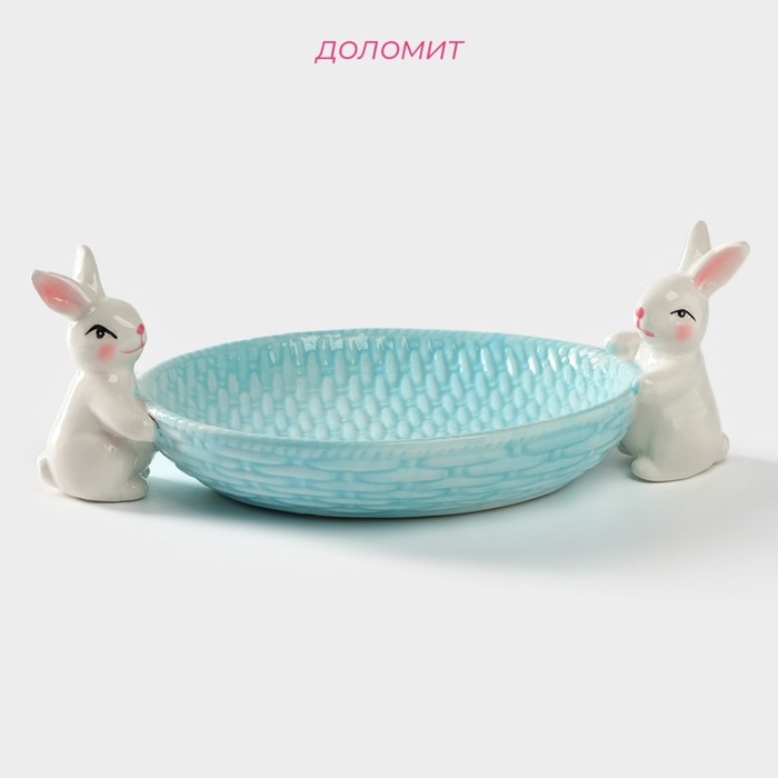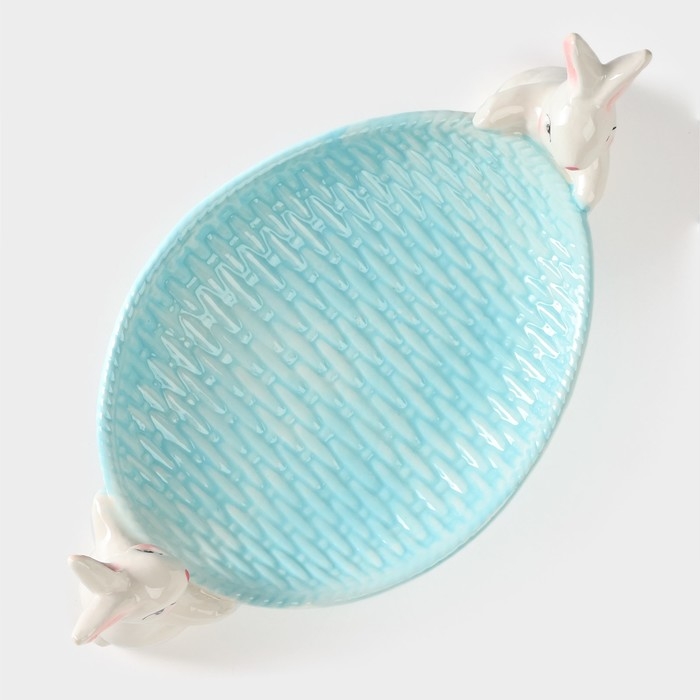 Блюдо сервировочное Доляна «Зайка», 30×16,5×10 см, цвет голубой