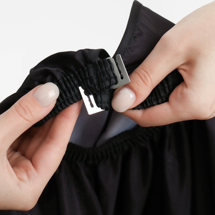 Пеньюар защитит одежду клиента от попадания волос, воды, краски и других составов. Он мягко обхватит шею без утяжеления. Универсальный размер подойдёт людям всех пропорций. Не использовать высокие температуры для разглаживания пеньюара. Рекомендуется использовать метод отпаривания.