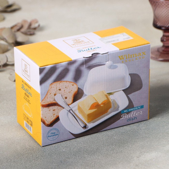 Маслёнка фарфоровая Wilmax, 19×12,5×8,5 см, цвет белый