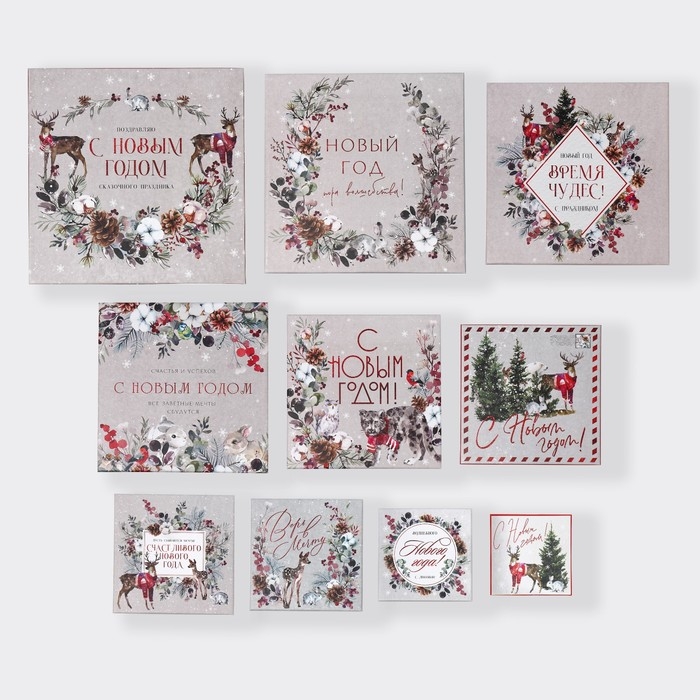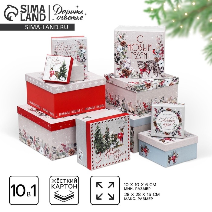 Набор подарочных коробок 10 в 1 «С Новым годом», 10 х 10 х 6 ‒ 28 х 28 х 15 см, Новый год