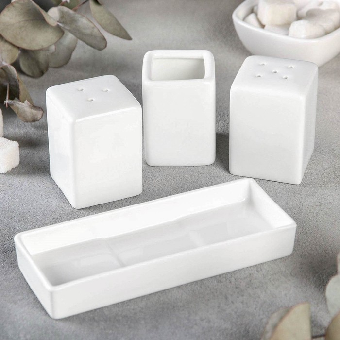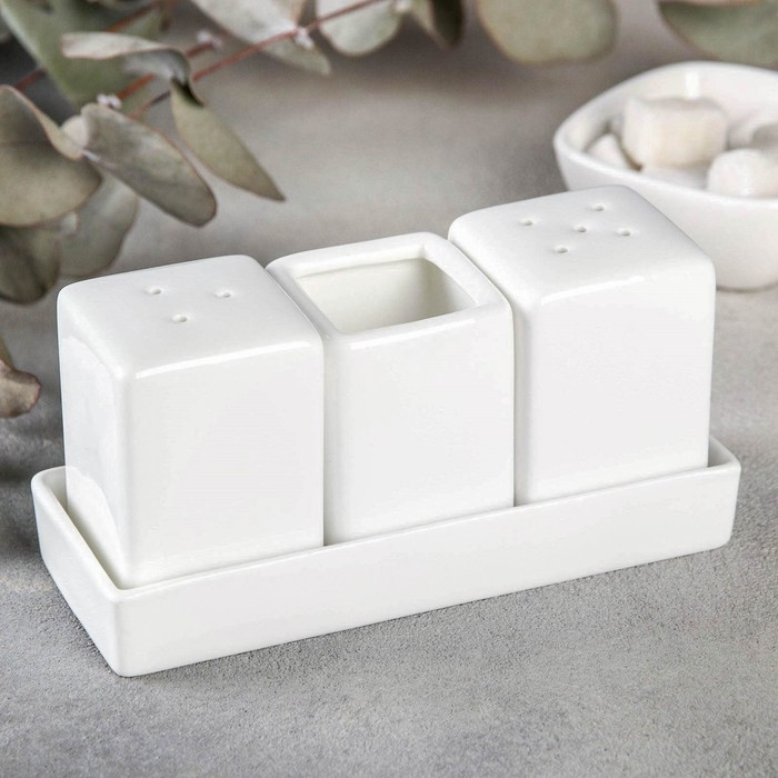 Набор фарфоровый для специй Wilmax, 3 предмета: солонка 60 мл, перечница 60 мл, ёмкость для зубочисток, цвет белый