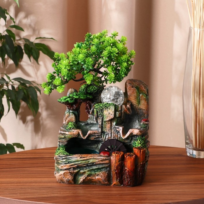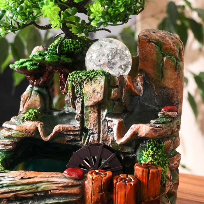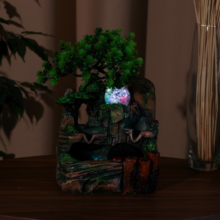 Фонтан "Дерево на камнях, брёвнышки" 14х19х20 см (с подсветкой)