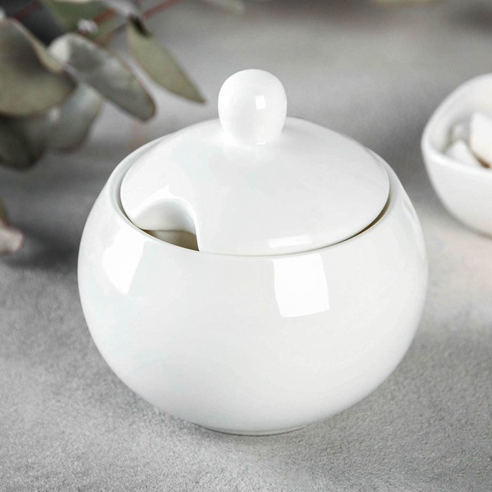 Сахарница фарфоровая с крышкой Wilmax Olivia, 325 мл, цвет белый