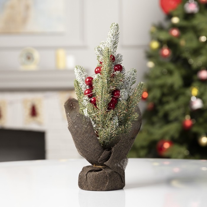 Светодиодная фигура «Снежная ёлка с ягодами», 12.5 × 28.5 × 7.5 см, пластик, батарейки CR2032х2 (в комплекте), свечение мульти