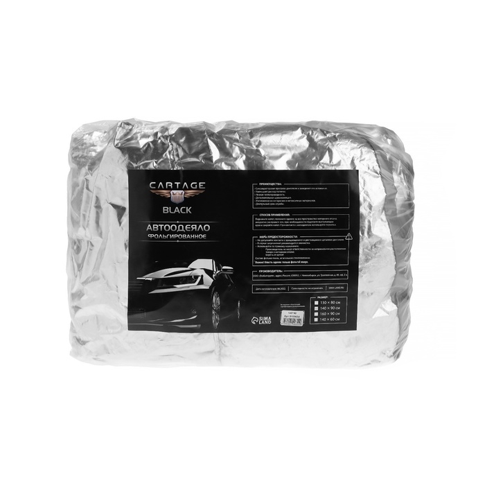 Автоодеяло для двигателя Cartage, 140 х 90 см, фольгированное, чёрное