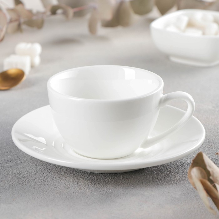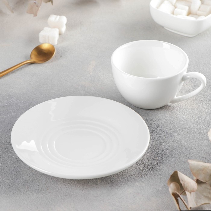 Кофейная пара фарфоровая Wilmax, 2 предмета: чашка 160 мл, блюдце d=14,3 см, цвет белый