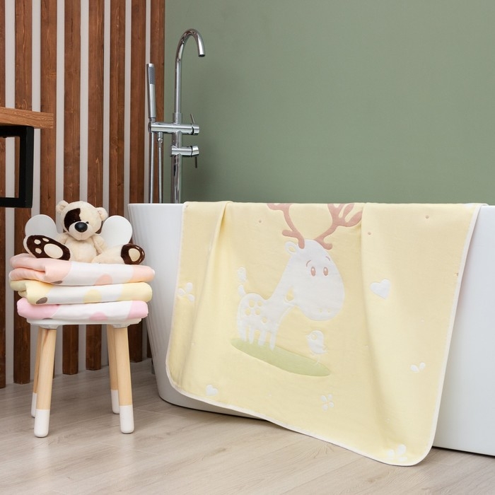 Полотенце детское Крошка Я «Оленёнок» 95х100±5 см, цвет жёлтый, 100% хлопок, 280 г/м2