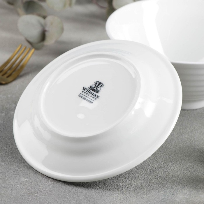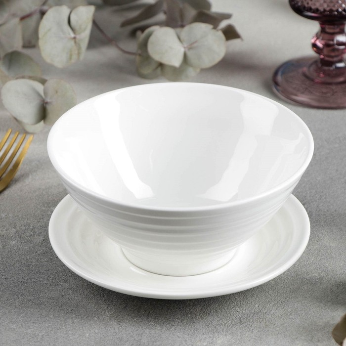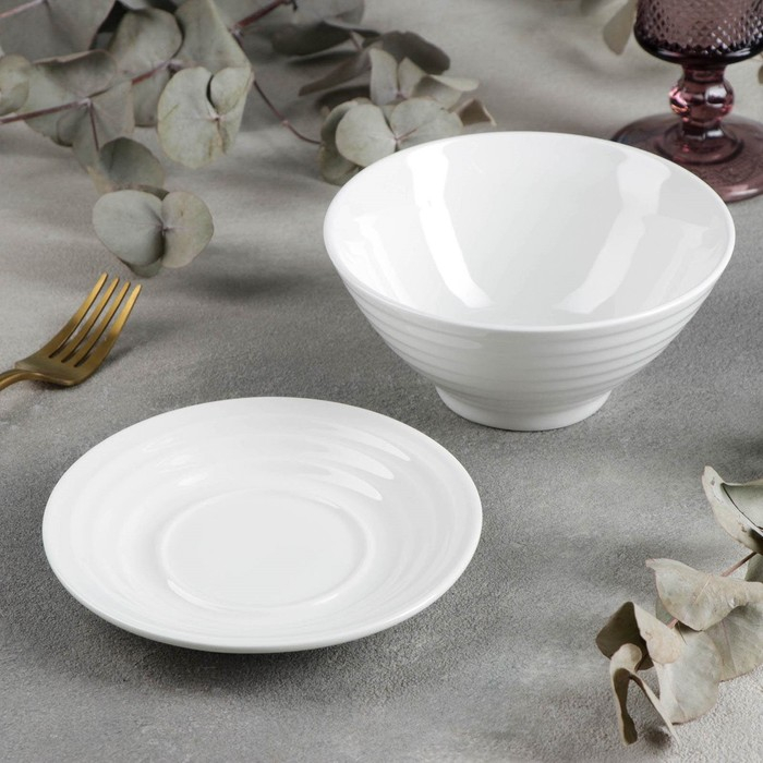 Миска фарфоровая с блюдцем, 2 предмета: миска 500 мл, блюдце d=15 см, цвет белый