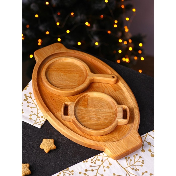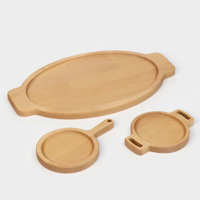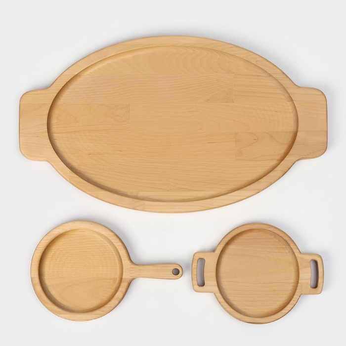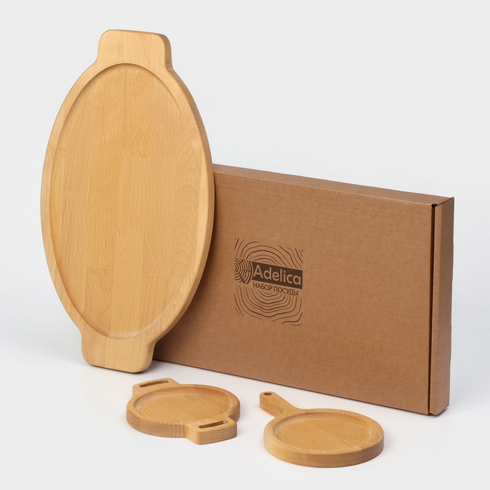 Подарочный набор деревянной посуды Adelica «Кухни мира», доски для подачи 3 шт: 43×25 см, 21×14 см, 18×14 см, берёза