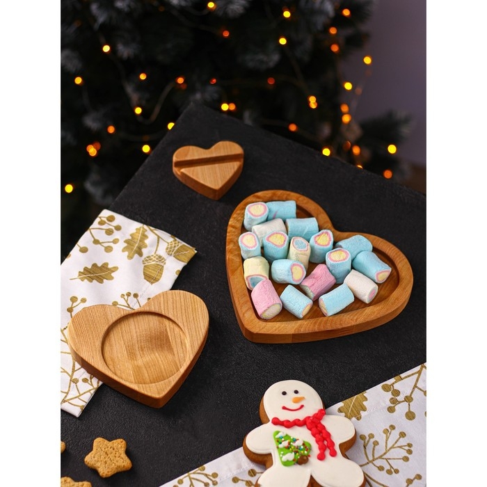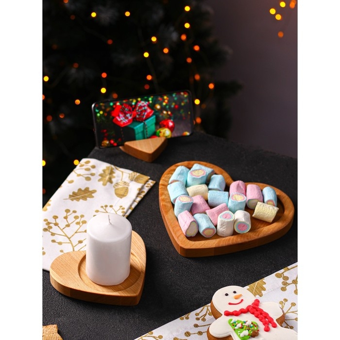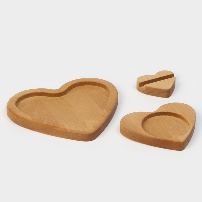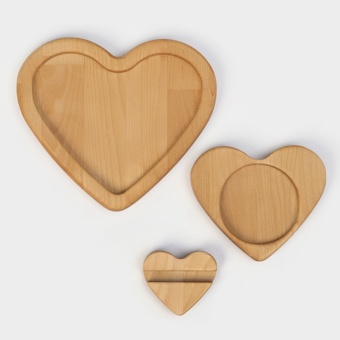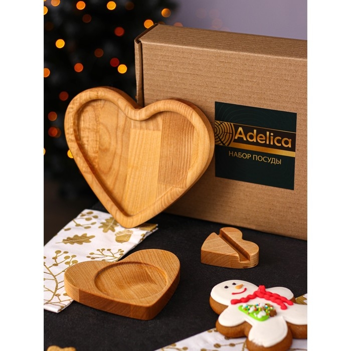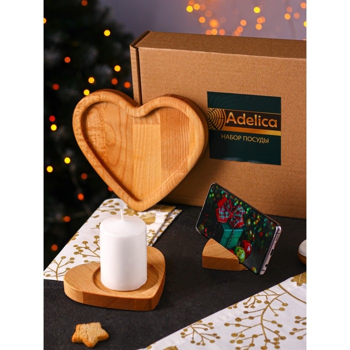 Подарочный набор деревянной посуды Adelica «Для тебя», тарелка 20×17 см, подставка под горячее и телефон, берёза