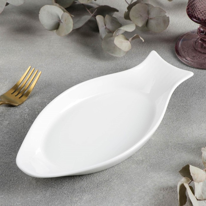 Блюдо фарфоровое для рыбы Wilmax, 25,5×12 см, цвет белый