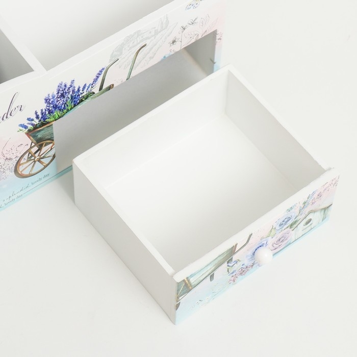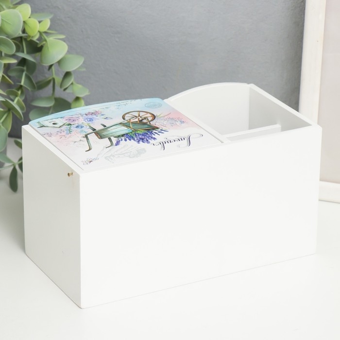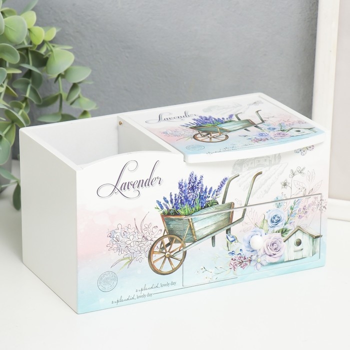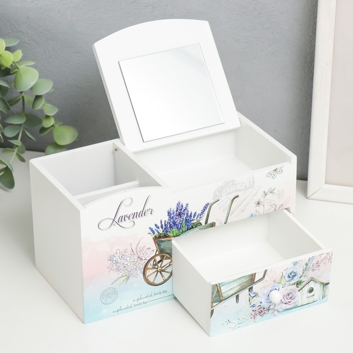 Шкатулка дерево с зеркалом и подставкой "Тележка с лавандой" 10,8х18,5х10 см