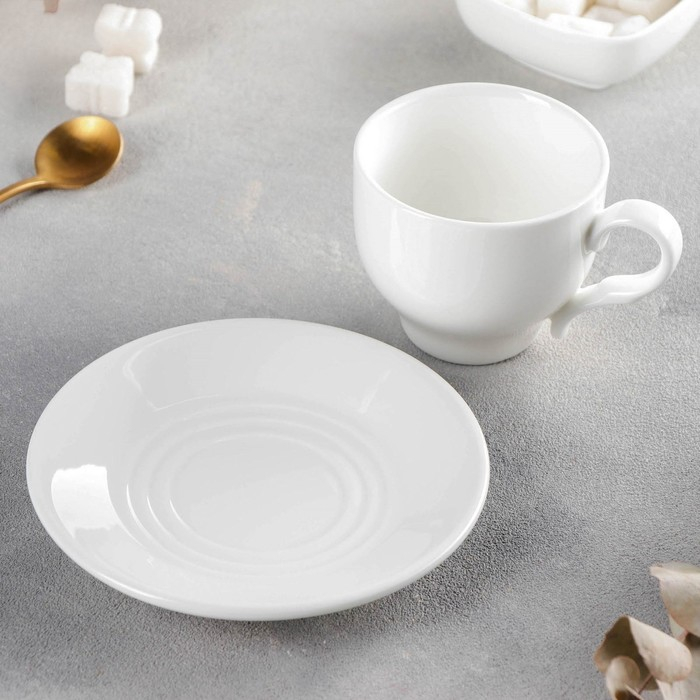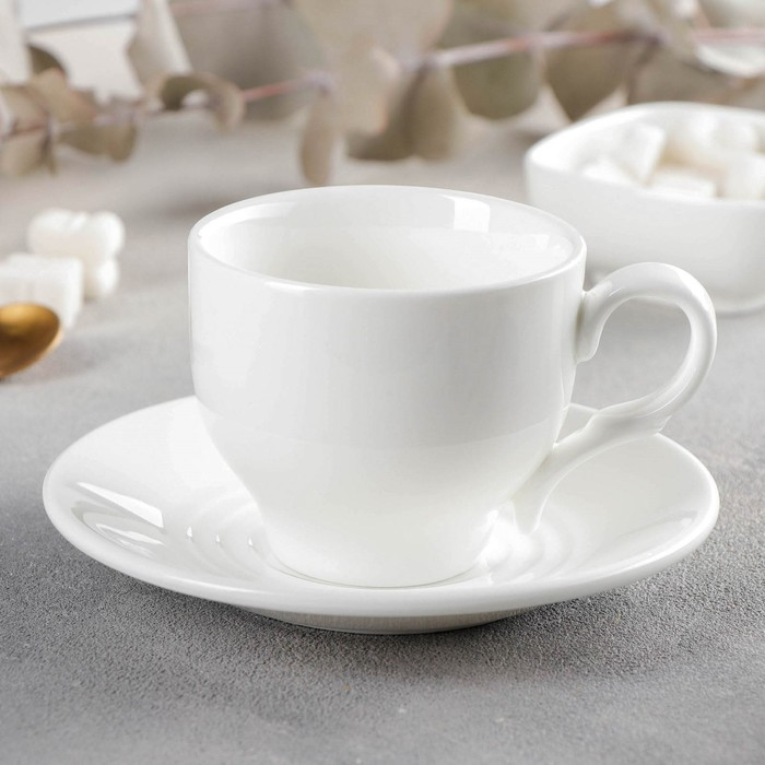 Чайная пара фарфоровая Wilmax, 2 предмета: чашка 220 мл, блюдце d=14,2 см, цвет белый