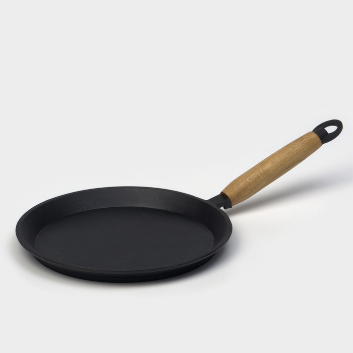 Сковорода блинная литая чугунная Magma, d=22 см, h=1.5 см, деревянная ручка, индукция