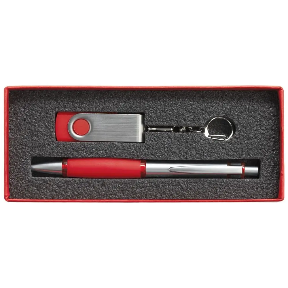 Коробка Notes с ложементом для ручки и флешки, красная