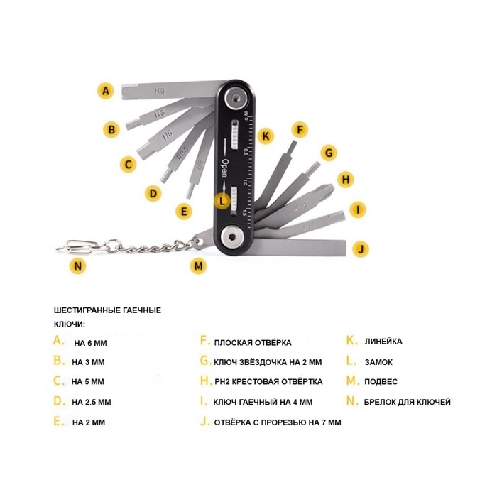 Мультитул 11в1: отвертки, ключи, линейка, черный