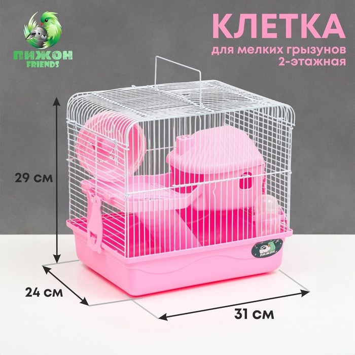 Клетка для грызунов "Пижон", двухэтажная с наполнением 31 х 24 х 29 см, розовая