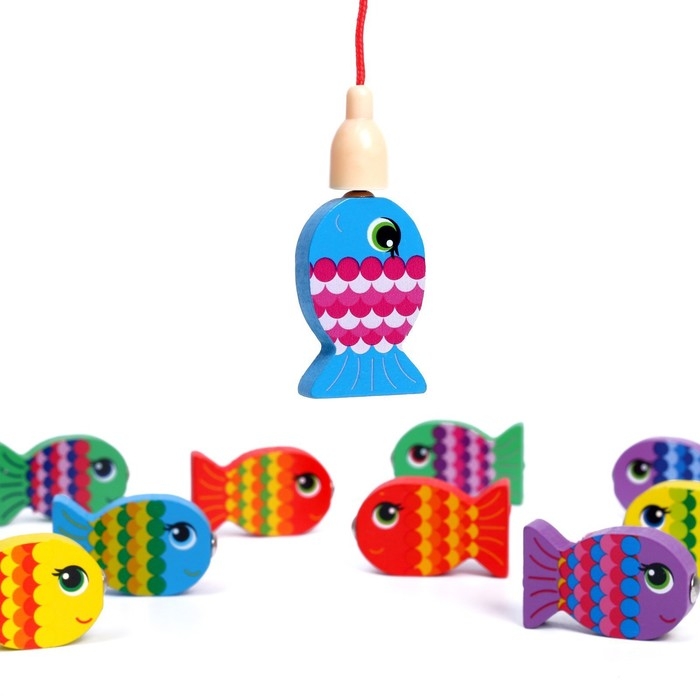 - Ловите рыбок на магнитную удочку, а затем, так же с помощью удочки, попробуйте поставить из на место.